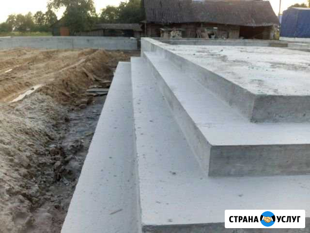 Изделия из бетона , дорожки , клумбы , бетонирование дворов , ступени , фундаменты .